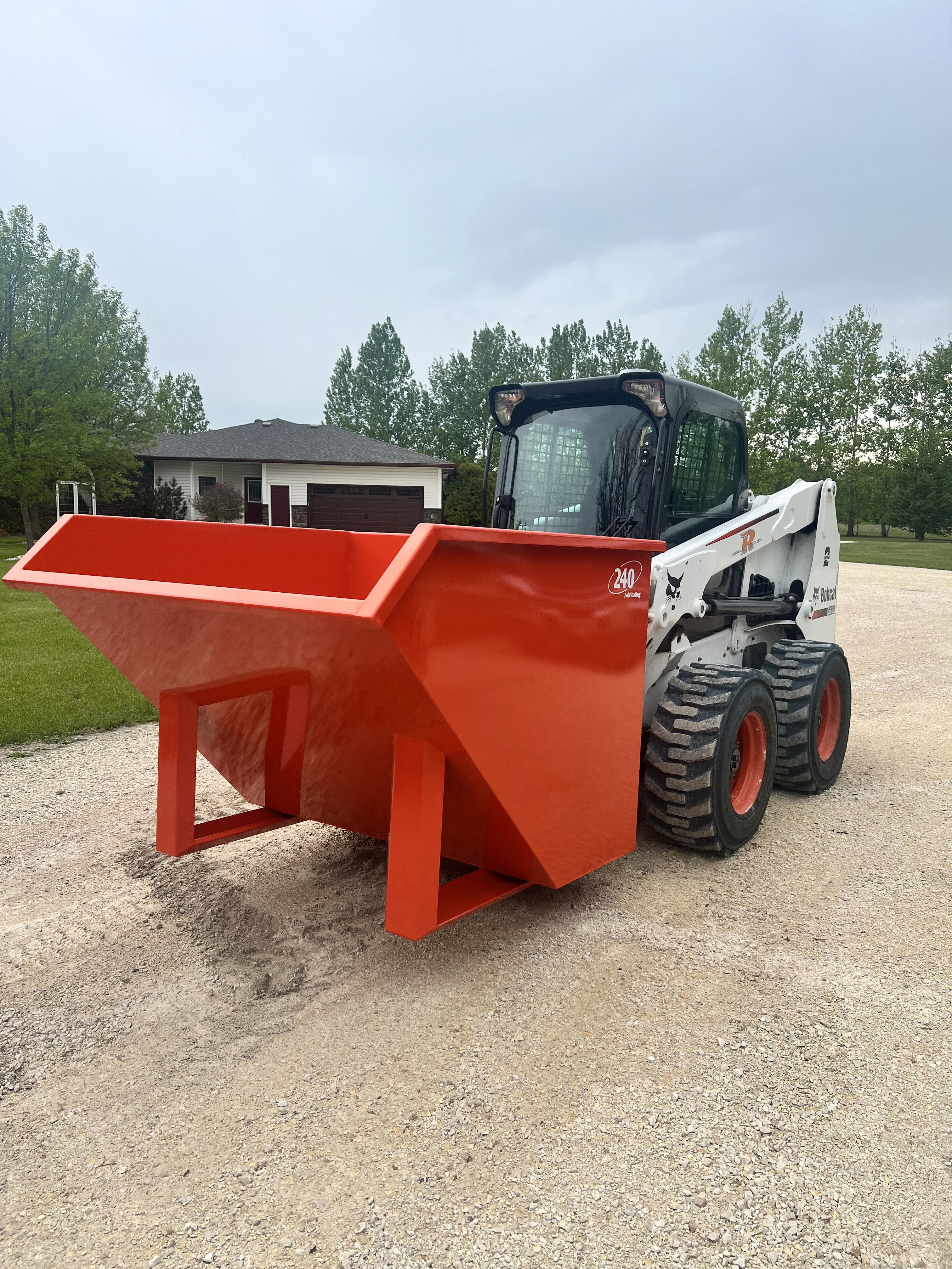 2yd, 3yd…or any size dumpster! With skid steer attach, self dumping or pull on from a truck! Let us know what you need!